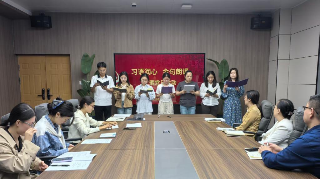 为深入学习贯彻习近平新时代中国特色社会主义思想,进一步筑牢党员教师队伍的思想政治根基,9月29日,国际教育学院党支部于健行楼302组织开展了“习语润心 金句朗诵”主题党日活动。全体教师参加了活动。