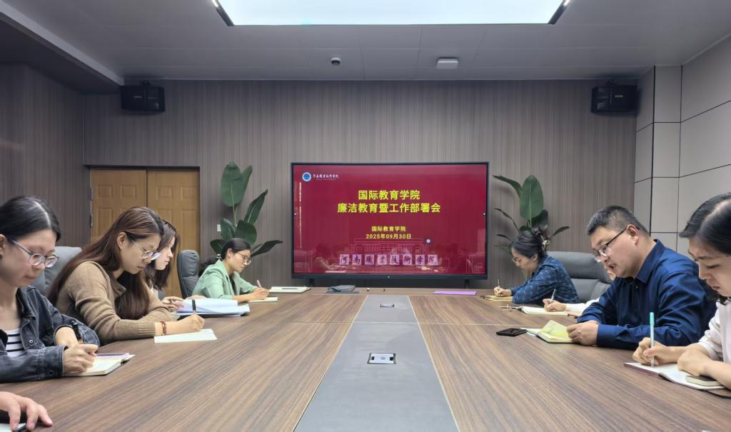9月30日,国际教育学院在健行楼302会议室召开国庆中秋“双节”期间廉洁教育暨重点工作部署会,深入贯彻落实学校相关工作要求,统筹推进各项任务安排。学院全体教师参加会议。