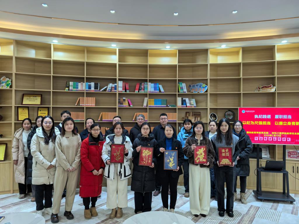 为深入贯彻新时代党的建设总要求,强化党员纪律意识与责任担当,进一步落实“为党育人、为国育才”使命担当,1月19日下午,国际教育学院党支部联合材料工程学院教师党支部以“执纪践诺 履职担当”为主题开展特色党日活动。支部全体党员参加,活动通过“理论铸魂、警示明纪、践诺笃行”三维联动,筑牢党员思想防线,凝聚发展合力。