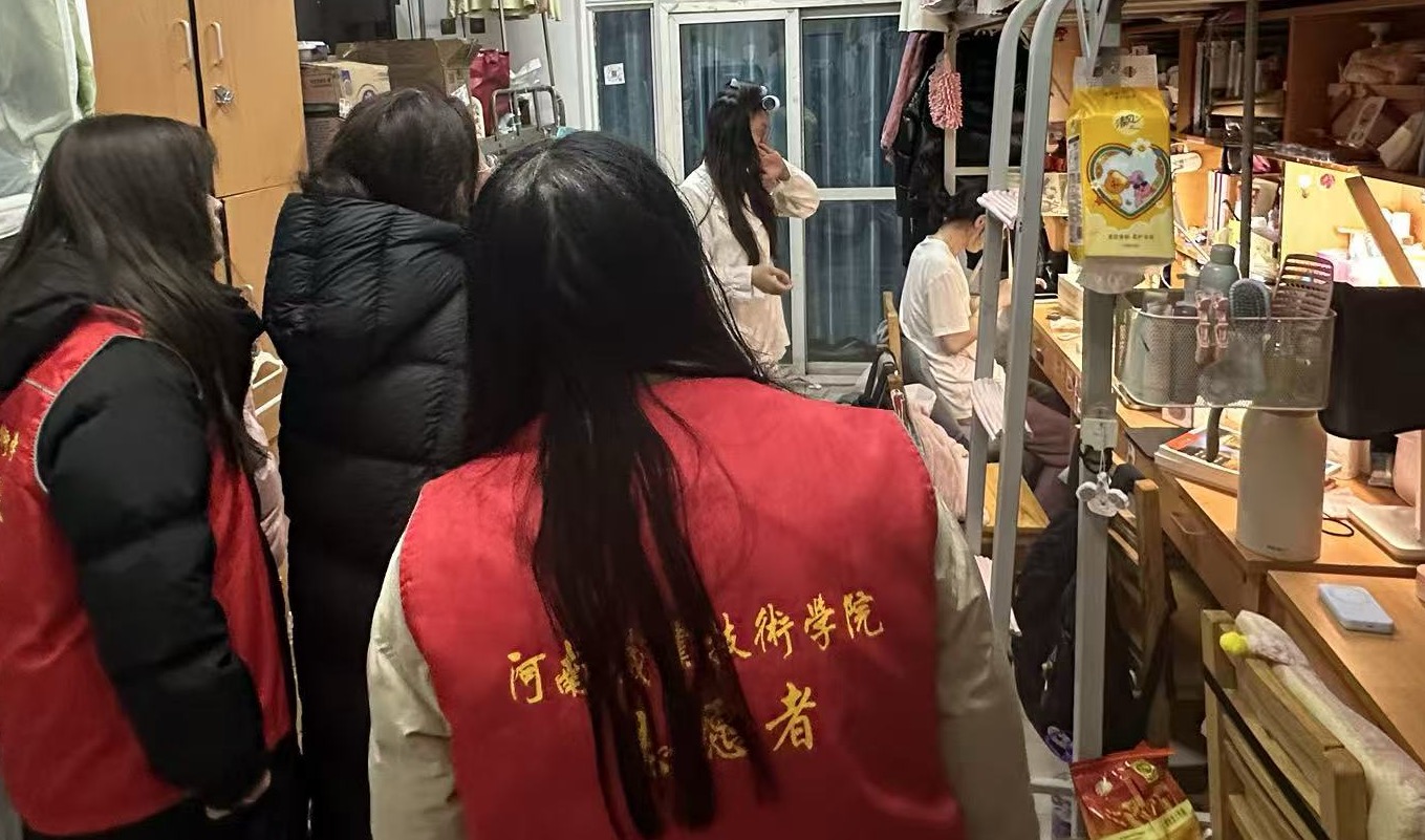 在送去关怀的同时,老师们也对家长关系、心理动态、宿舍用电安全、消防设施状态及疏散通道畅通情况进行了细致检查,对大功率电器、私拉乱接电线、易燃物品存放等安全隐患进行重点排查。检查过程中,老师们反复叮嘱同学们增强安全意识,严格遵守宿舍管理规定,养成良好的安全习惯,共同维护安全整洁的居住环境。针对发现的问题,老师们现场提出整改意见,并协助同学们立行立改,确保不留死角、不留隐患。